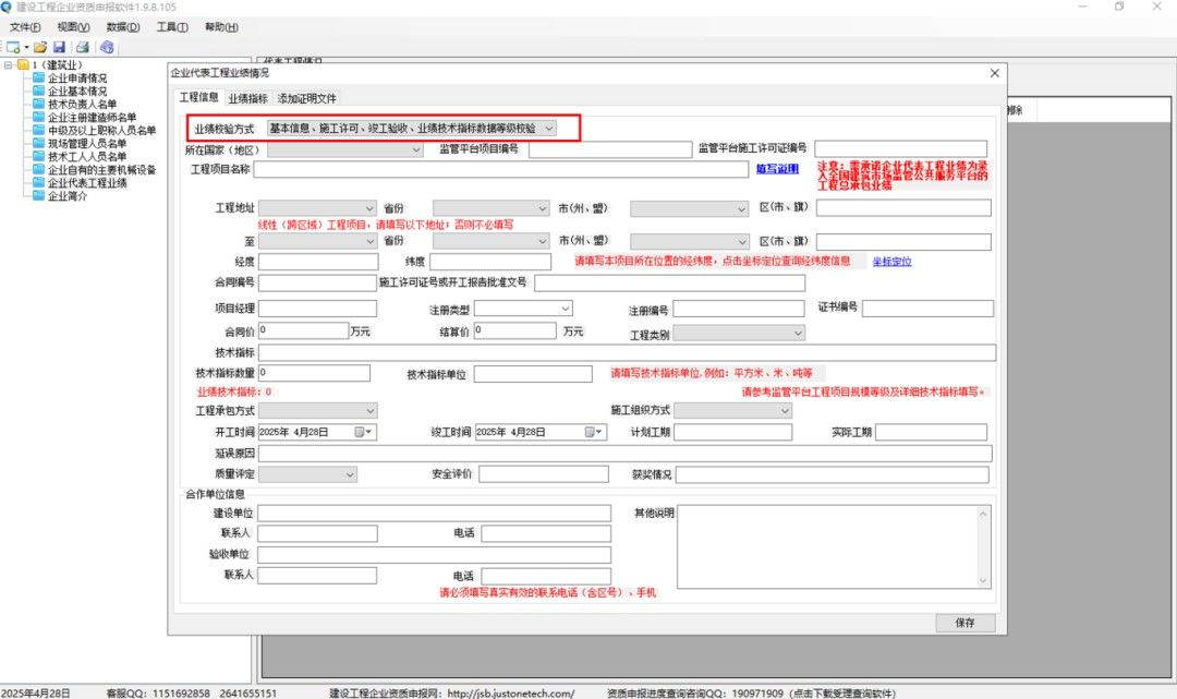 監(jiān)理資質3個界面:基本信息,竣工驗收,業(yè)績技術指標